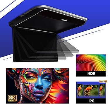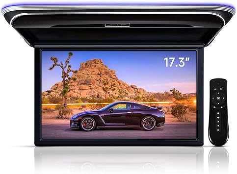 Dash Camera-ZBARK-17.3 Inch Car Overhead Monitor Ceiling Wide IPS Screen Android System Built in Stereo Speakers Flip Down Overhead Car Monitor Support Bluetooth 5.0 WiFi HDMI USB