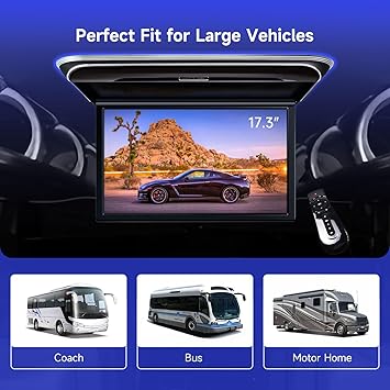 - 17.3inch Large Digital Screen With its huge 17.3″ screen, the ROOF173M is designed for larger vehicles such as coaches, buses, motor homes and the like, for which this roof monitor is ideally suited